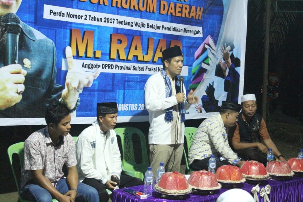 Dalam sosialisasi ini, M Rajab Wakil Ketua Komisi E DPRD Provinsi Sulsel tersebut menyampaikan bahwa selaku wakil rakyat, ia diberi amanah untuk menyebarluaskan Perda yang mana rancangannya digodok terlebih dahulu di DPRD bersama Pemprov Sulsel sebelum diundangkan.