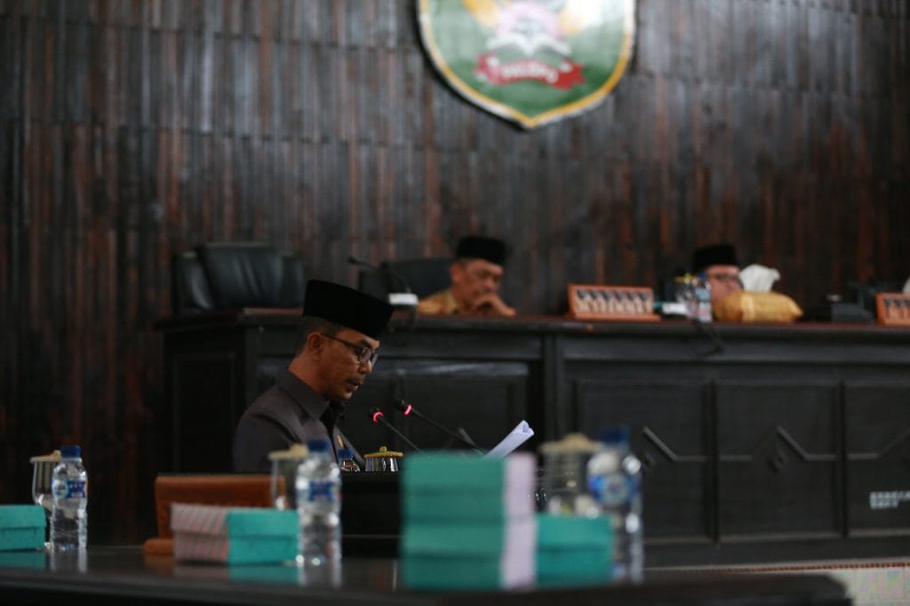 | Dahri Suli saat membacakan laporan hasil pembahasan Banggar DPRD Kota Palopo |