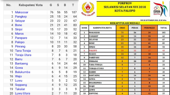 Diungkapkannya, data informasi per 29 September pikul 10.30 WITA, pada data aplikasi, Kontongen Palopo hanya meraih 10 Emas dan bertengger di Posisi 10. Padahal, tambah Sam Ridwan, saat itu, Palopo berada pada posisi keenam dengan perolehan 14 medali emas.