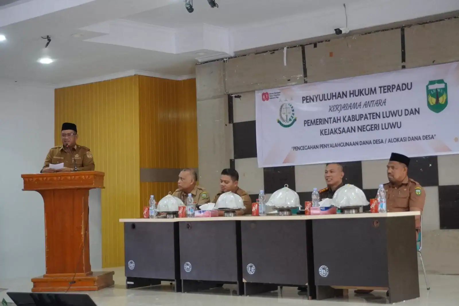 LUWU, SPIRITKITA – Pemerintah Kabupaten (Pemkab) Luwu bekerja sama dengan Kejaksaan Negeri Luwu menggelar Penyuluhan Hukum Terpadu terkait pencegahan penyalahgunaan dana desa, di Aula Kantor Bappelitbangda Luwu, Selasa (12/8/2025).