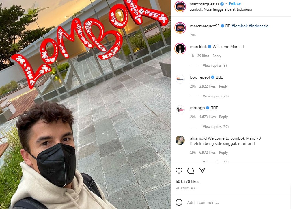 Marc Marquez Tiba di Lombok NTB, Warganet: Selamat Datang di Indonesia