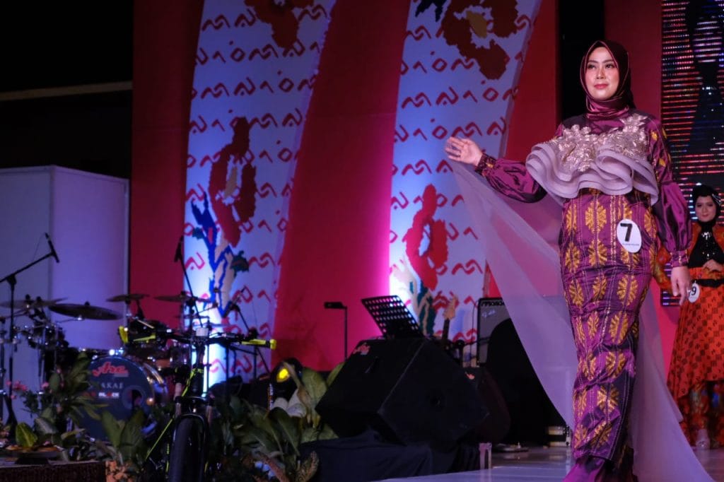 Dengan menampilkan pakaian yang didominasi warna merah maroon dan kombinasi kuning keemasan, ketua TP PKK Palopo tampak percaya diri melangkah diatas catwalk dihadapan para dewan juri dan audiens yang meyaksikan moment tersebut.