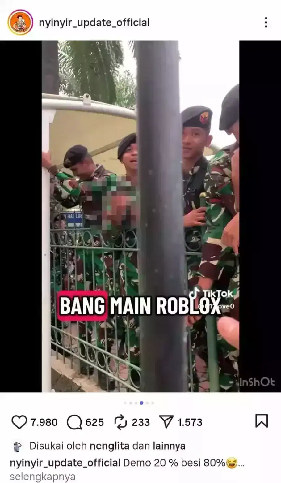 “Demo 20%, besi 80%,” tulis akun tersebut, Sabtu (30/8/2025).