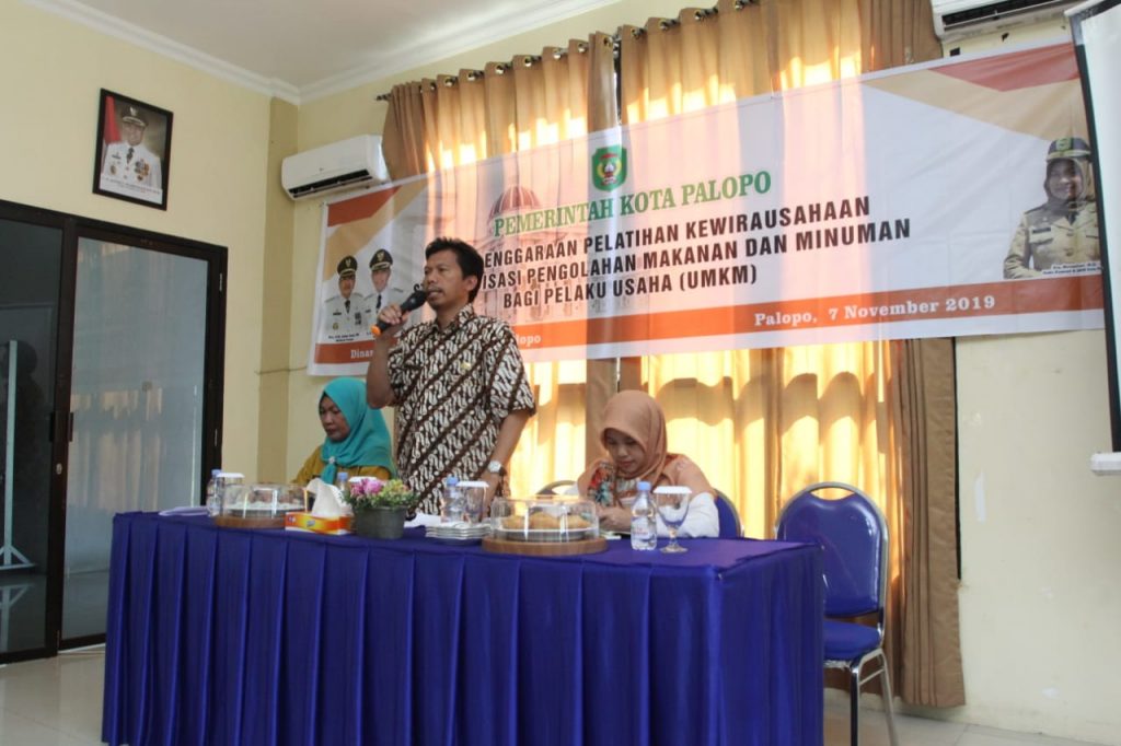 Dinas Koprasi dan UKM Kota Palopo menggelar Pelatihan Kewirausahaan Standardisasi Pengelolaan Makanan dan Minuman Bagi Pelaku UMKM Kota Palopo, Kamis, 7 November 2019.
