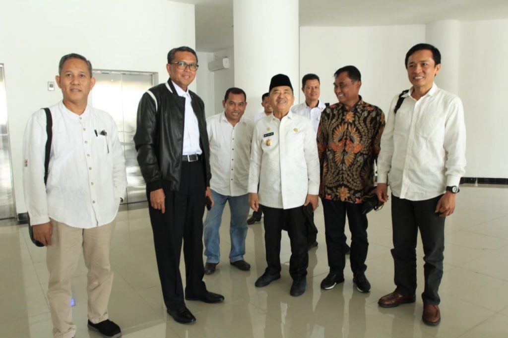 Gubernur Sulawesi Selatan, Prof. HM. Nurdin Abdullah menerima Walikota Palopo, Drs. HM. Judas Amir dan Bupati Luwu H. Basmin Matayang, di ruangannya, Kantor Perwakilan Gubernur Sulsel, yang berada di lantai 3 Kantor Walikota Palopo setelah tiba di Bandara, Rabu (29/5/2019).
