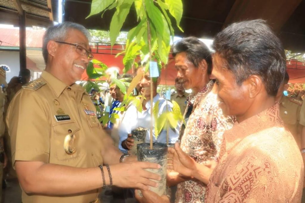 “Mari kita kembalikan kejayaan Kakao seperti 2 dekade sebelumnya, dimana saat itu kita dapat menikmati penghasilan yang cukup mensejahterakan dari hasil kakao” kata Husler saat menyerahkan bibit kakao sambung pucuk secara simbolis kepada sejumlah kelompok tani di Desa Tarengge, Kecamatan Wotu, Selasa (19/11/2019)