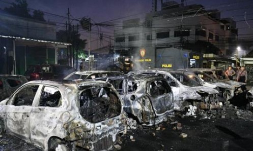 Mobil yang terbakar itu berada di dalam ataupun di luar kompleks Asrama Brimob. Polisi dibantu warga sekitar menangkap beberapa orang yang diduga melakukan pembakaran.