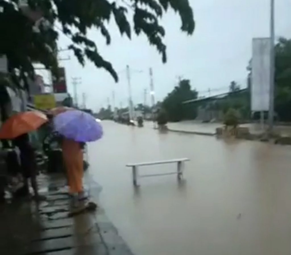 Hujan yang turun pada Minggu pagi, 28 April 2019 menyebabkan Jalan DR. Ratulangi Salobulo Kota Palopo kembali digenangi air setinggi Lutut orang dewasa.