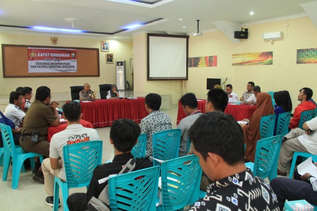 Menyikapi kesiapan deklarasi Pileg dan Pilpres Serentak 2019, Kepolisian Resor Palopo menggelar rapat koordinasi Deklarasi Kesiapan Pileg dan Pilpres di Aula Bhakti Pratidina Polres Kota Palopo, Kamis 13/9/2018.