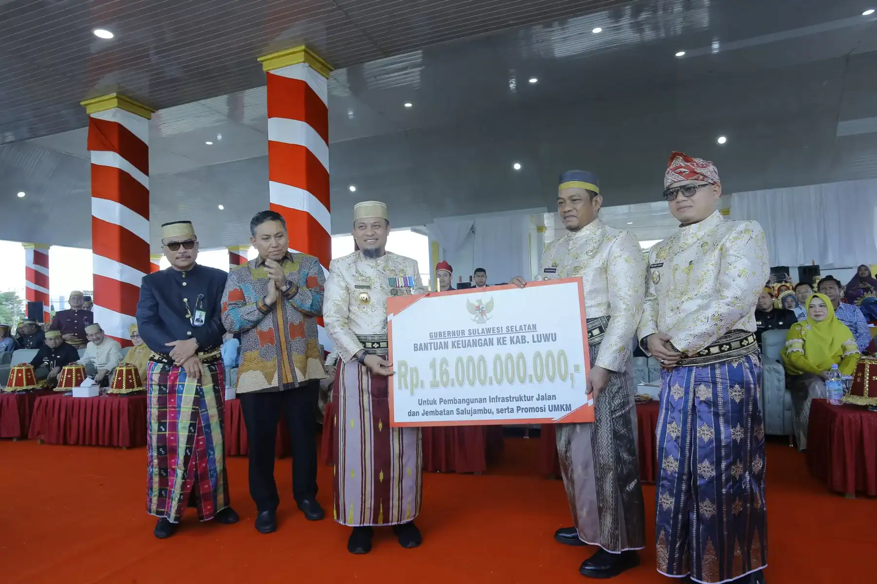 Bupati Luwu, H. Patahuddin, dalam sambutannya menyampaikan rasa syukur dan apresiasi atas perjalanan panjang Kabupaten Luwu sebagai daerah yang kaya sejarah, budaya, dan sumber daya alam.