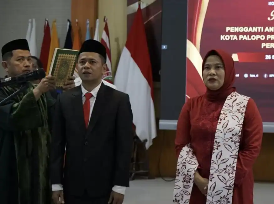 Komisi Pemilihan Umum (KPU) Republik Indonesia melantik Adnan Husain dan Nurmaningsih sebagai Anggota KPU Kota Palopo, Sulawesi Selatan, Jumat (26/9/2025).