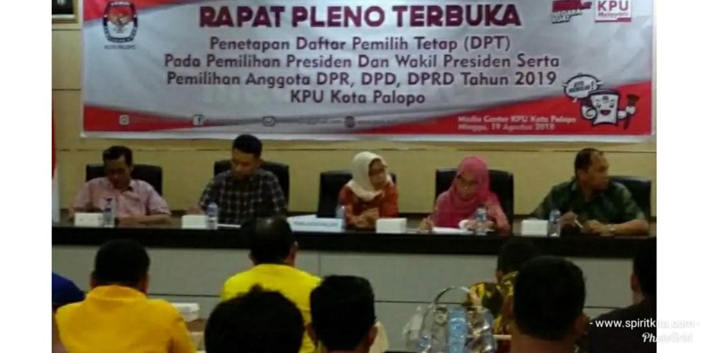 Lima Komisioner KPU Provinsi Sulsel yang mengambil alih tugas KPU Kota Palopo masing-masing Misna M Attas, Asram Jaya, Dr. Upi Astati, Dr. Syarifuddin Jurdi, dan Uslimin menggelar rapat pleno terbuka penetapan Daftar Pemilih Tetap (DPT) pada pemilihan Presiden dan Wakil Presiden serta Pemilihan Anggota DPR, DPD, DPRD tahun 2019 di Ruang Media Center KPU, Jalan Pemuda,Kecamatan Wara Selatan,Kota Palopo,Sulawesi Selatan, Minggu (19/8/2018).