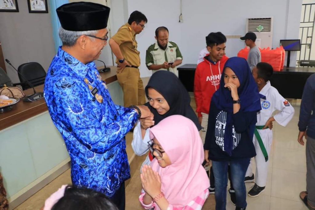 Bupati Luwu Timur, Muhammad Thoriq Husler melepas 138 Atlit Taekwondo Kabupaten Luwu Timur, yang akan berlaga di ajang kejuaraan Nasional Menpora Cup The Series, di Rumah Jabatan Bupati Luwu Timur, Senin (17/12/2019) .