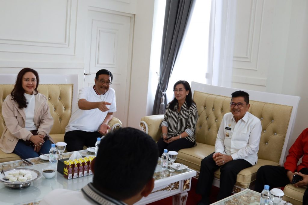 Di Palopo, Djarot Saiful Hidayat bersama isterinya Happy Farida, beserta tiga orang puterinya disambut langsung Wali Kota Palopo, HM Judas Amir didampingi Sekda Palopo, Firmanzah DP di Kantor Wali Kota Palopo, sekitar pukul 11.00 wita, Kamis, (26/12/2019) siang tadi.