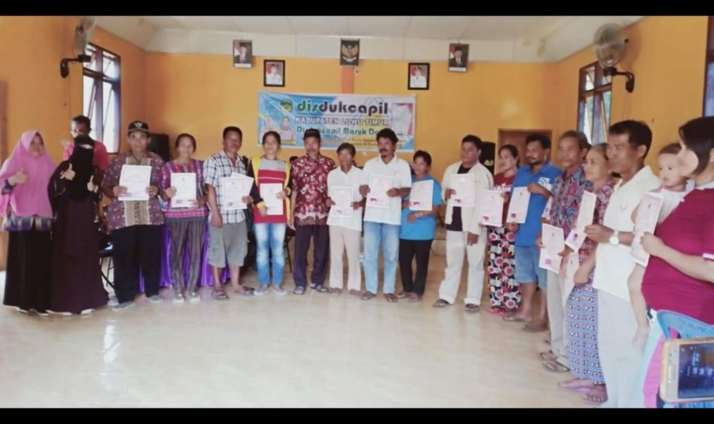 Untuk menciptakan Kabupaten Luwu Timur tertib administrasi kependudukan, Pemerintah Kabupaten Luwu Timur melalui Dinas Kependudukan dan Pencatatan Sipil menggelar pelayanan langsung administrasi kependudukan khusus Akta Perkawinan bagi warga non muslim yang sudah nikah secara agama namun belum memilliki kutipan akta perkawinan dari Dinas Capil, di Aula Kantor Desa Non Blok, Kecamatan Kalaena, Kamis (24/10/2019).