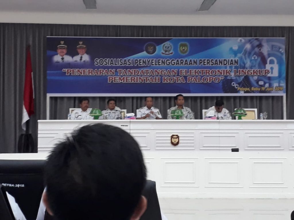 Pemerintah Kota Palopo melalui Dinas Persandian dan Statistik menggelar sosialisasi Penyelenggaraan Persandian dan Penerapan Tanda Tangan Elektronik untuk Lingkup Pemerintah Kota Palopo di Ruang Pola Kantor Walikota Palopo, Rabu 19 Juni 2019.