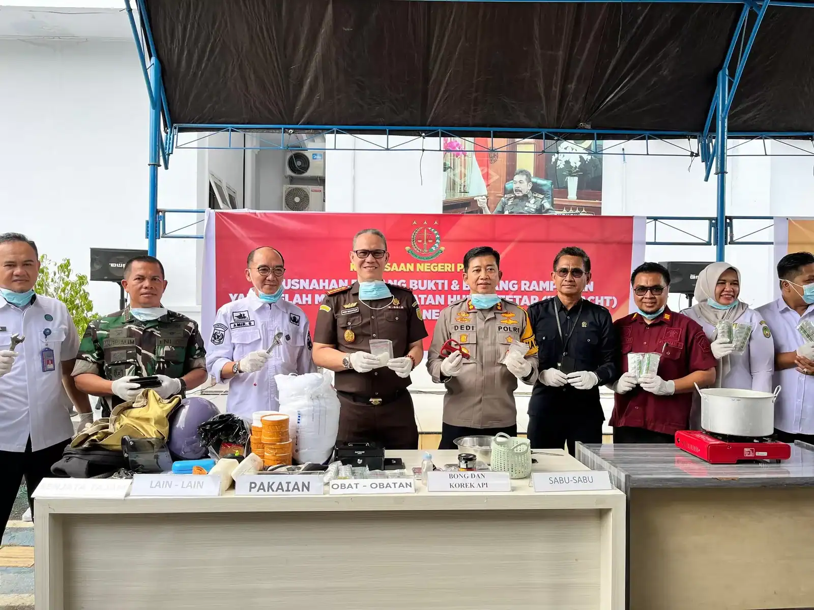 Barang bukti yang dimusnahkan pada kesempatan ini antara lain narkotika jenis sabu beserta peralatan pendukungnya.