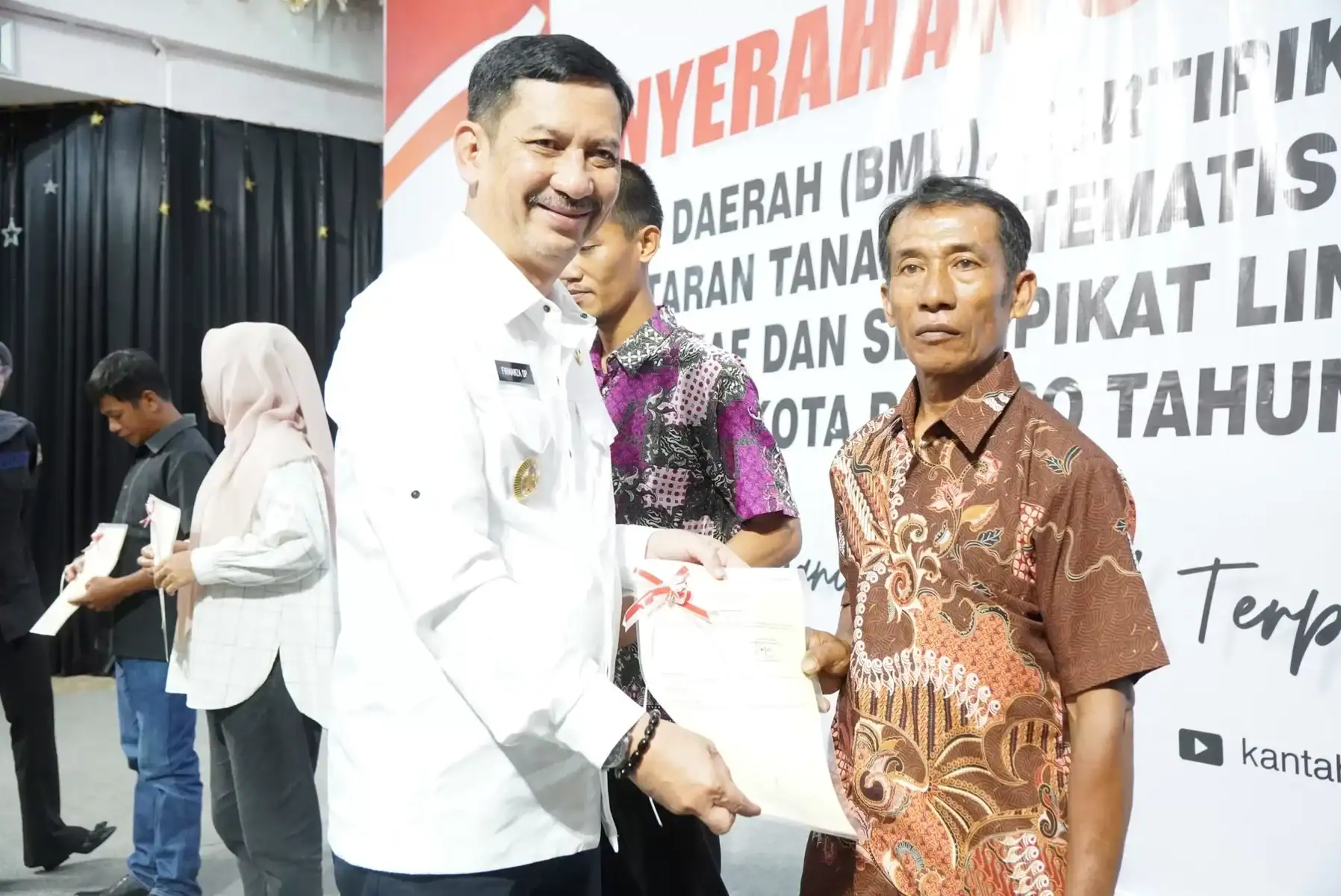 PALOPO, SPIRITKITA – Pemerintah Kota (Pemkot) Palopo melalui Kantor Pertanahan menyerahkan 15 sertipikat tanah kepada masyarakat dan instansi, termasuk sertipikat Barang Milik Daerah (BMD), sertipikat Wakaf, sertipikat Lintas Sektor, serta melalui program Pendaftaran Tanah Sistematis Lengkap (PTSL).