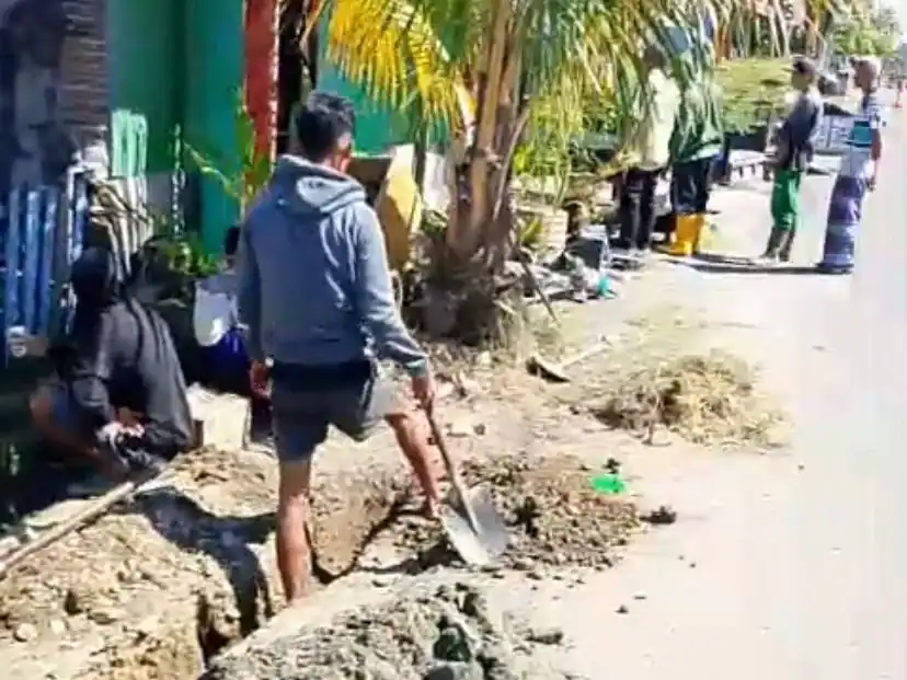 Pekerja mitra Perumda TM mulai melakukan penggalian di bahu jalan untuk penempatan pipa baru.