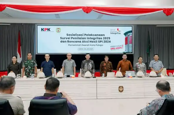 PALOPO, SPIRITKITA — Penjabat Wali Kota Palopo, Firmanza DP., menghadiri kegiatan Sosialisasi Pelaksanaan Survei Penilaian Integritas (SPI) 2025 dan Rencana Aksi Tindak Lanjut Hasil SPI 2024, yang digelar di Aula Ratona Kantor Wali Kota Palopo, Kamis (24/7/2025).
