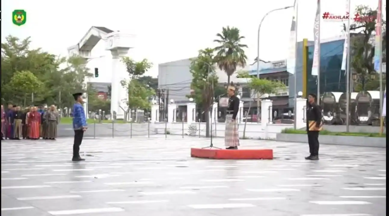 Para peserta upacara tampak mengenakan pakaian adat daerah, menambah nuansa budaya dalam peringatan nasional tersebut.