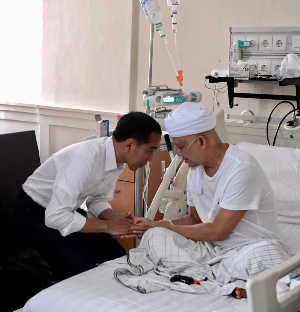 Sebelum acara pelantikan, Presiden juga sempat menjenguk ustaz kelahiran Banjarmasin 49 tahun silam ini di RSCM.