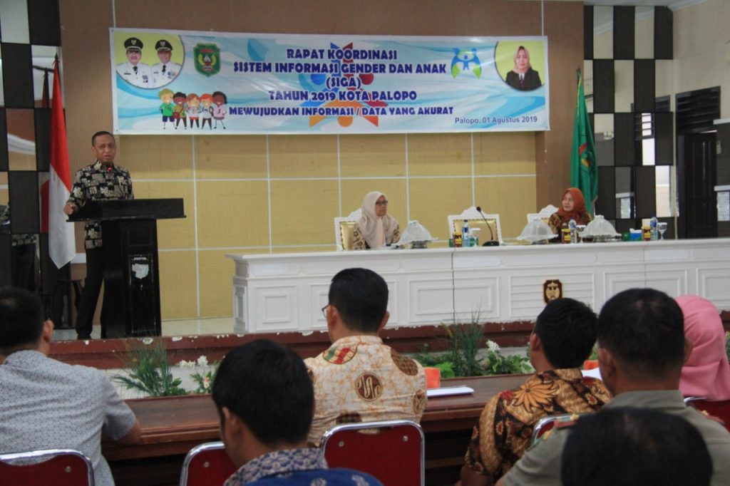 Mewakili Walikota Palopo Drs. HM Judas Amir, Wakil Walikota Palopo Ir. Rahmat Masri Bandaso (RMB) membuka Rapat Koordinasi Sistem Informasi Gender dan Anak (SIGA) Tahun 2019 di yang dilaksanakan di Auditorium Saokotae, Kamis 1 Agustus 2019.