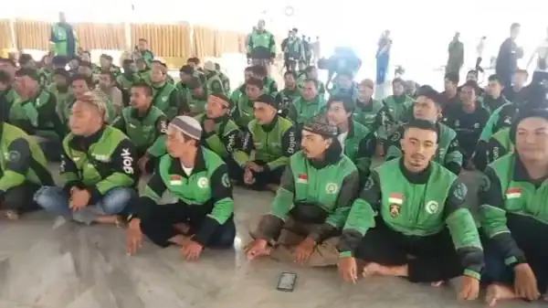 Salat Gaib dilaksanakan usai Salat Jumat berjemaah. Para pengemudi ojol tampak larut dalam doa, menunjukkan solidaritas dan duka mendalam atas wafatnya rekan seprofesi mereka.