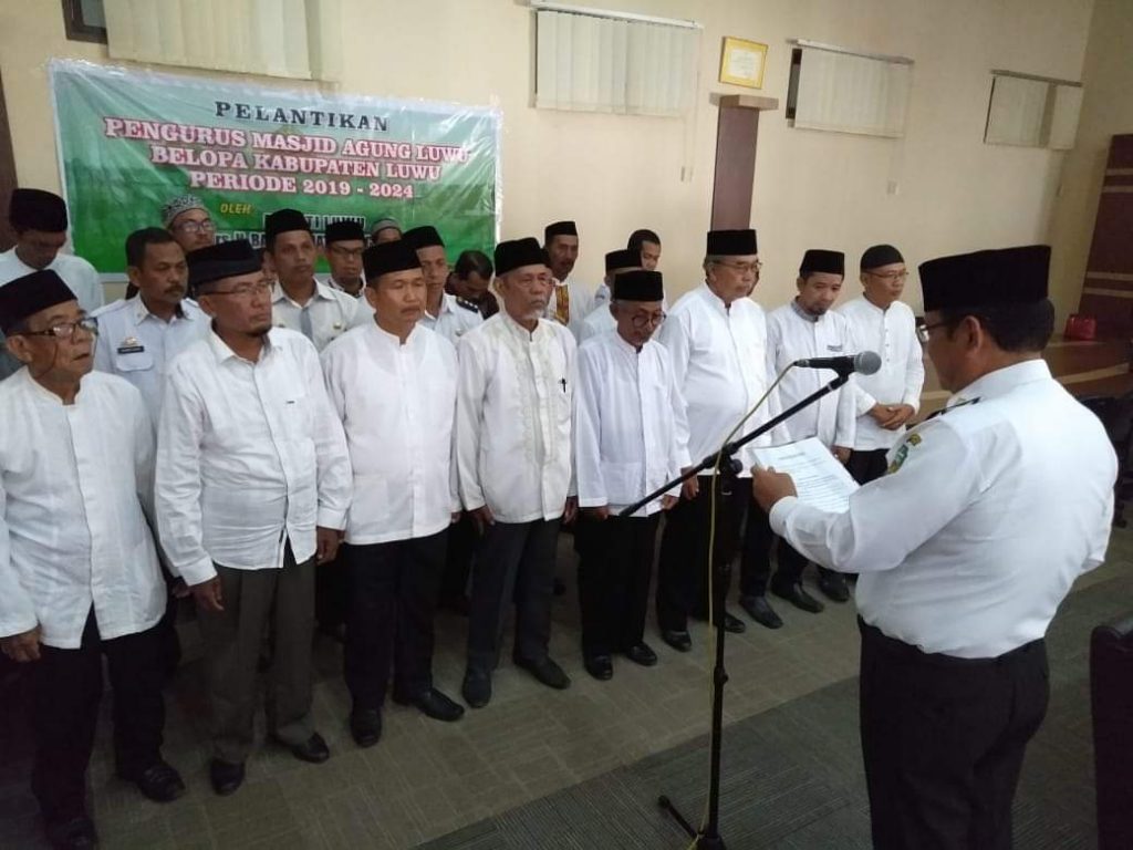 Komitmen itu diutarakan Bupati Luwu saat melantik pengurus Masjid Agung Luwu periode 2019-2024 di ruang kerja Bupati Luwu, Kompleks Perkantoran Pemkab Luwu, Kelurahan Senga, Rabu (20/11/2019)