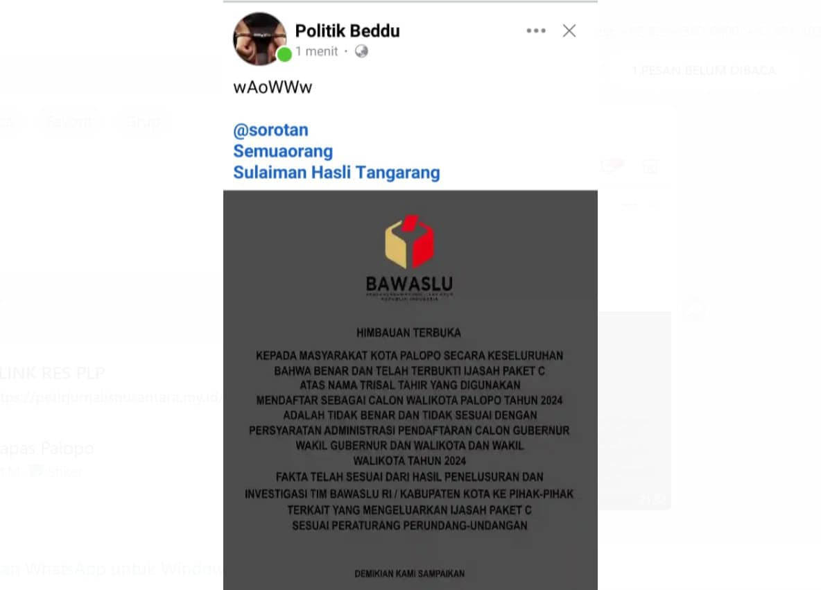 “Kami mengecam tindakan oknum yang tidak bertanggung jawab yang menyebarkan kampanye hitam terhadap Pak Trisal. Ini tidak hanya meresahkan masyarakat tetapi juga berpotensi memicu kericuhan di tengah masyarakat Palopo,” ujarnya.