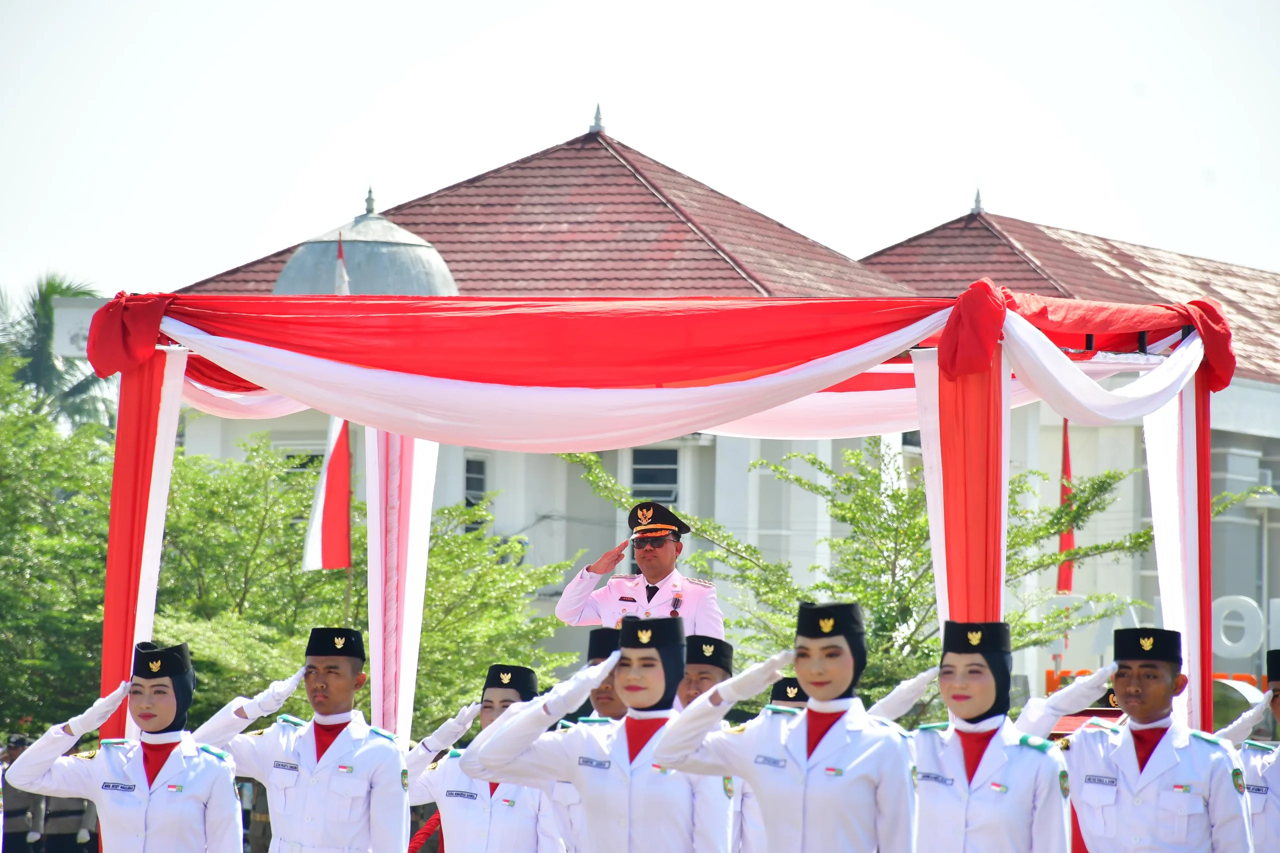 Pengibaran Bendera Merah Putih dilakukan oleh Pasukan Pengibar Bendera Pusaka (Paskibraka) Kota Palopo yang membentuk formasi “79 NKRI,” simbolisasi tahun peringatan kemerdekaan. Upacara berlangsung dengan khidmat dan penuh semangat kebangsaan.