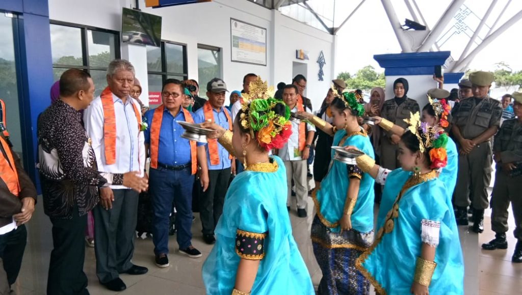 Kedatangan para tamu Apeksi yang merupakan Para Walikota dibandara Bua, disambut dengan pengalungan sarung tenun sutra serta penampilan Tari Paddupa atau Tarian Penyambutan.